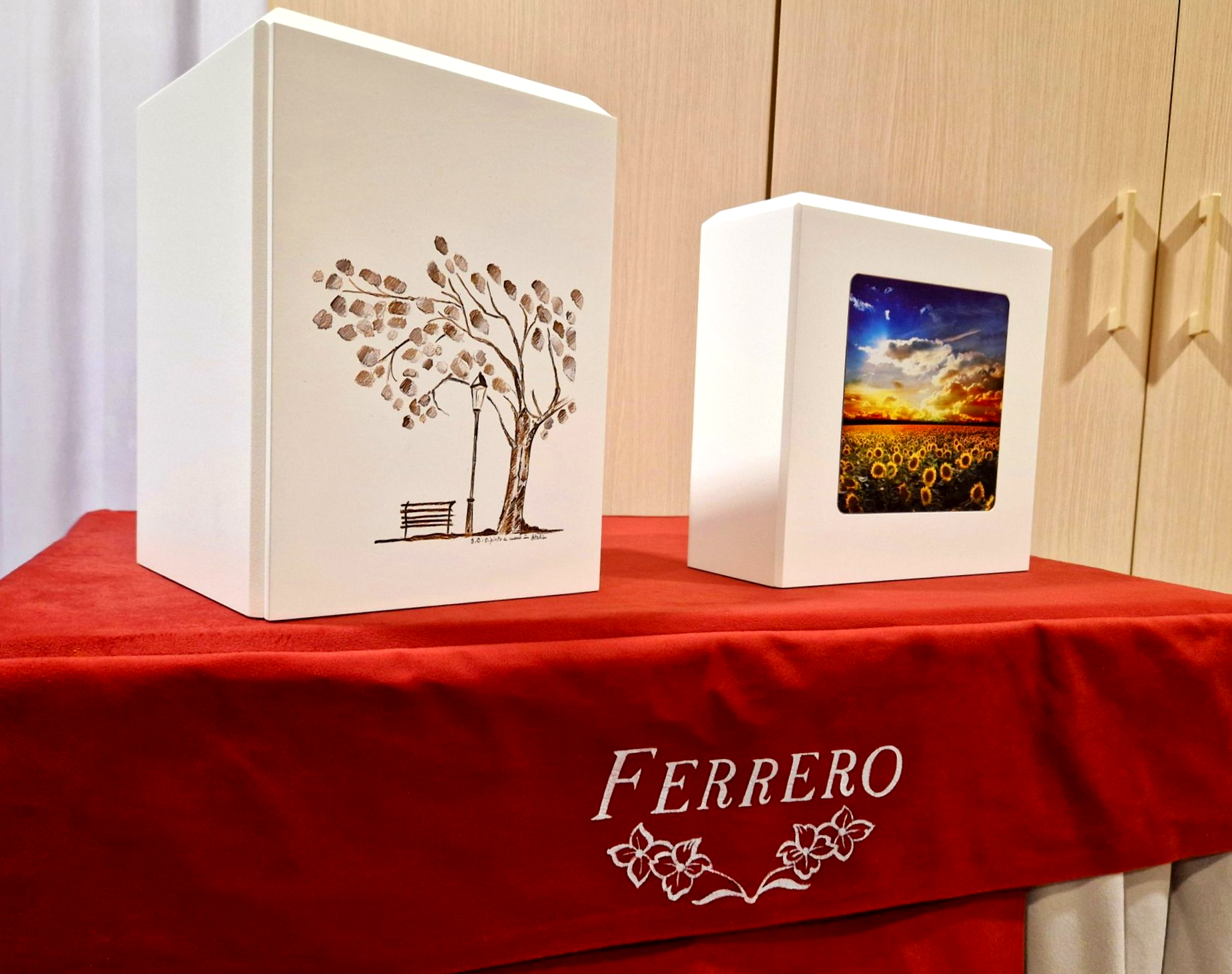 Le Onoranze Funebri Ferrero offrono anche una ricca gamma di urne cinerarie, bronzi e ceramiche funerarie, realizzati da artigiani specializzati. Le urne sono disponibili in vari materiali e design, dai modelli più classici a quelli moderni, e possono essere incise o decorate su richiesta.